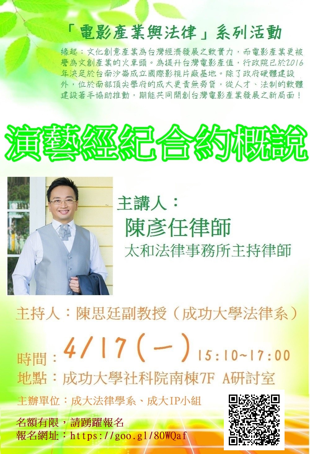 「電影產業與法律」專題演講:<演藝經紀合約概說>