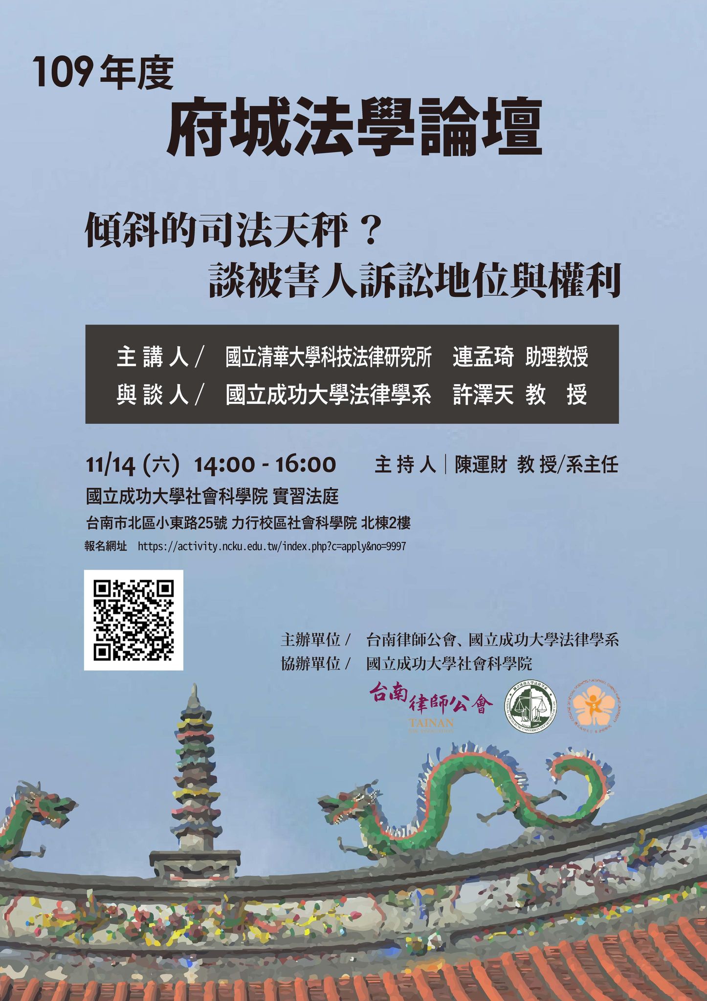 109年度府城法學論壇-傾斜的司法天秤?談被害人訴訟地位與權利