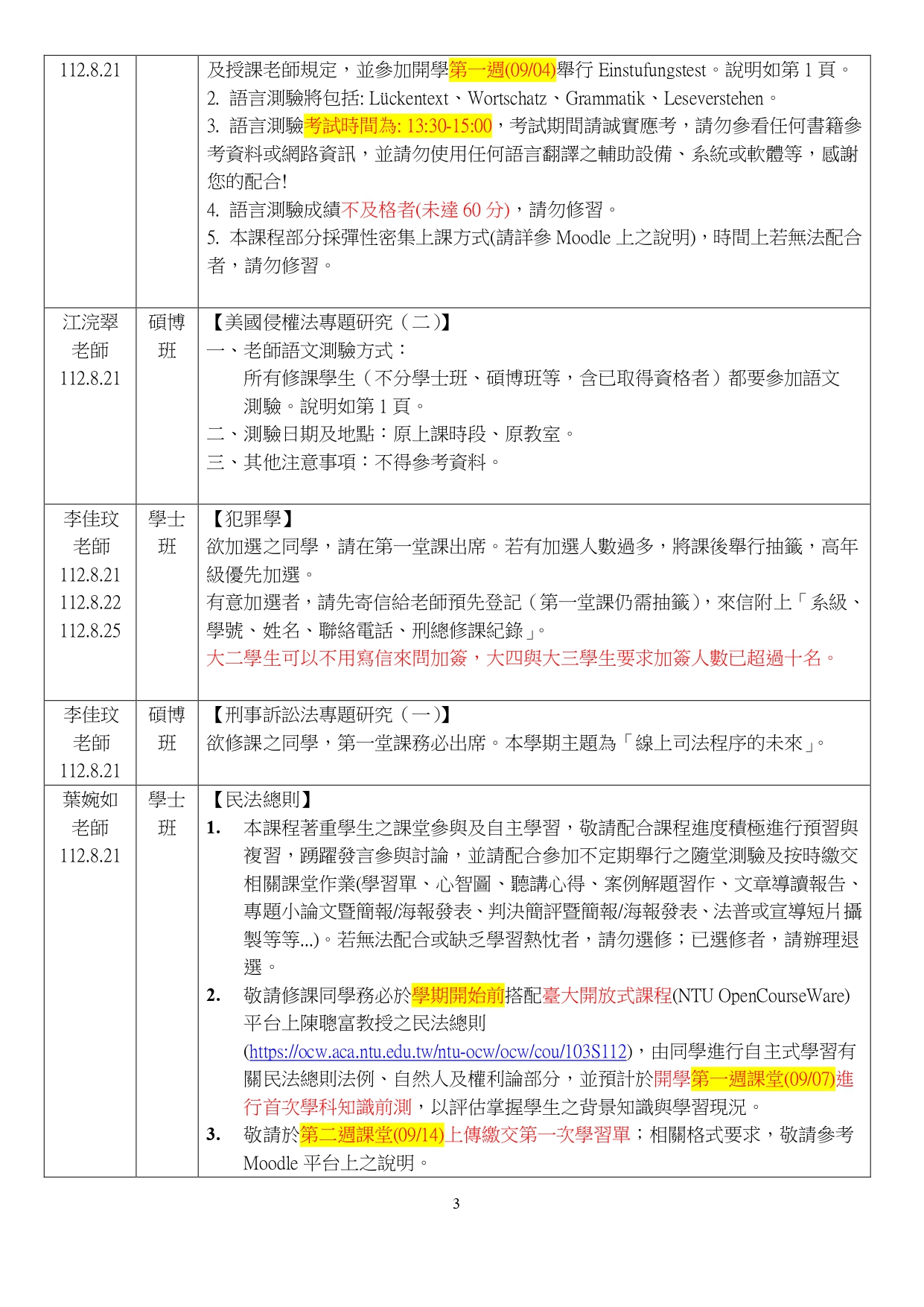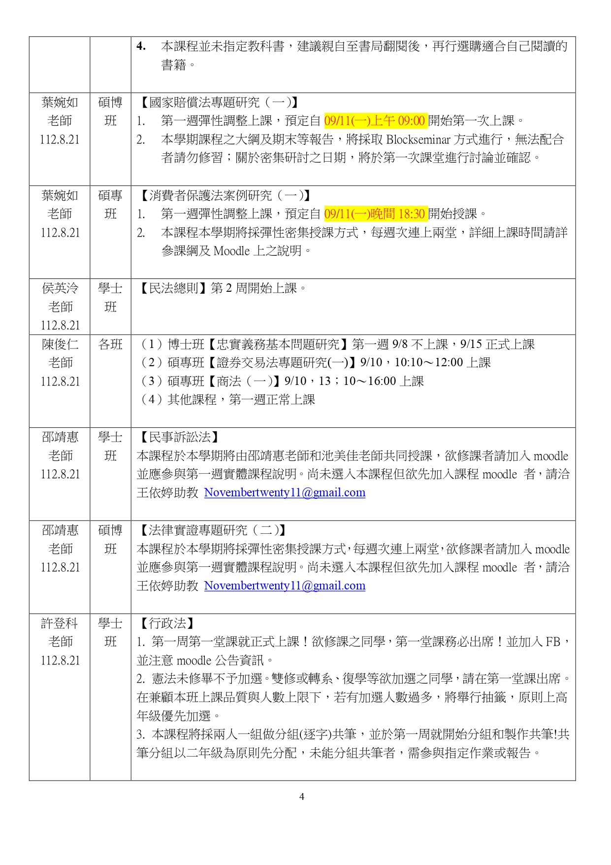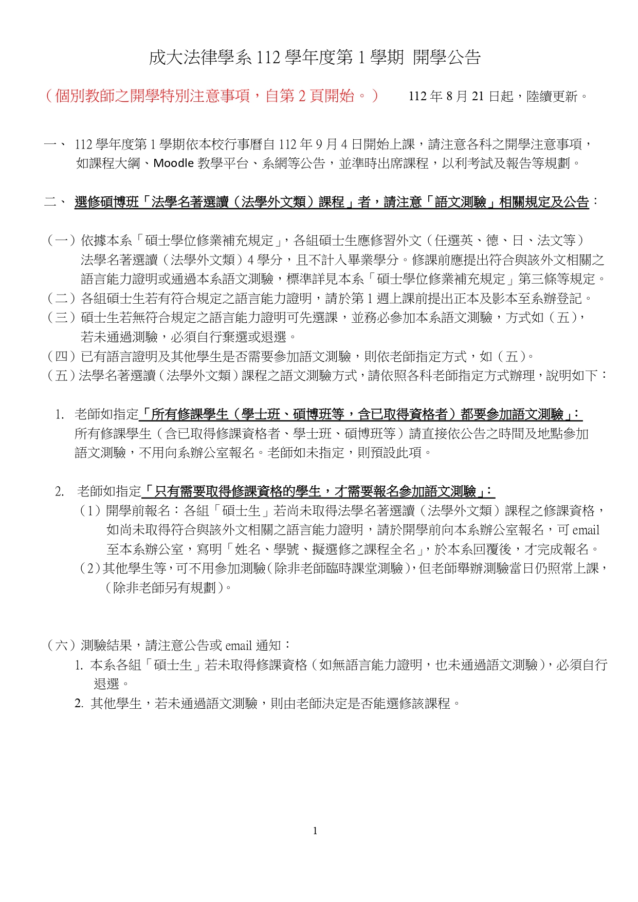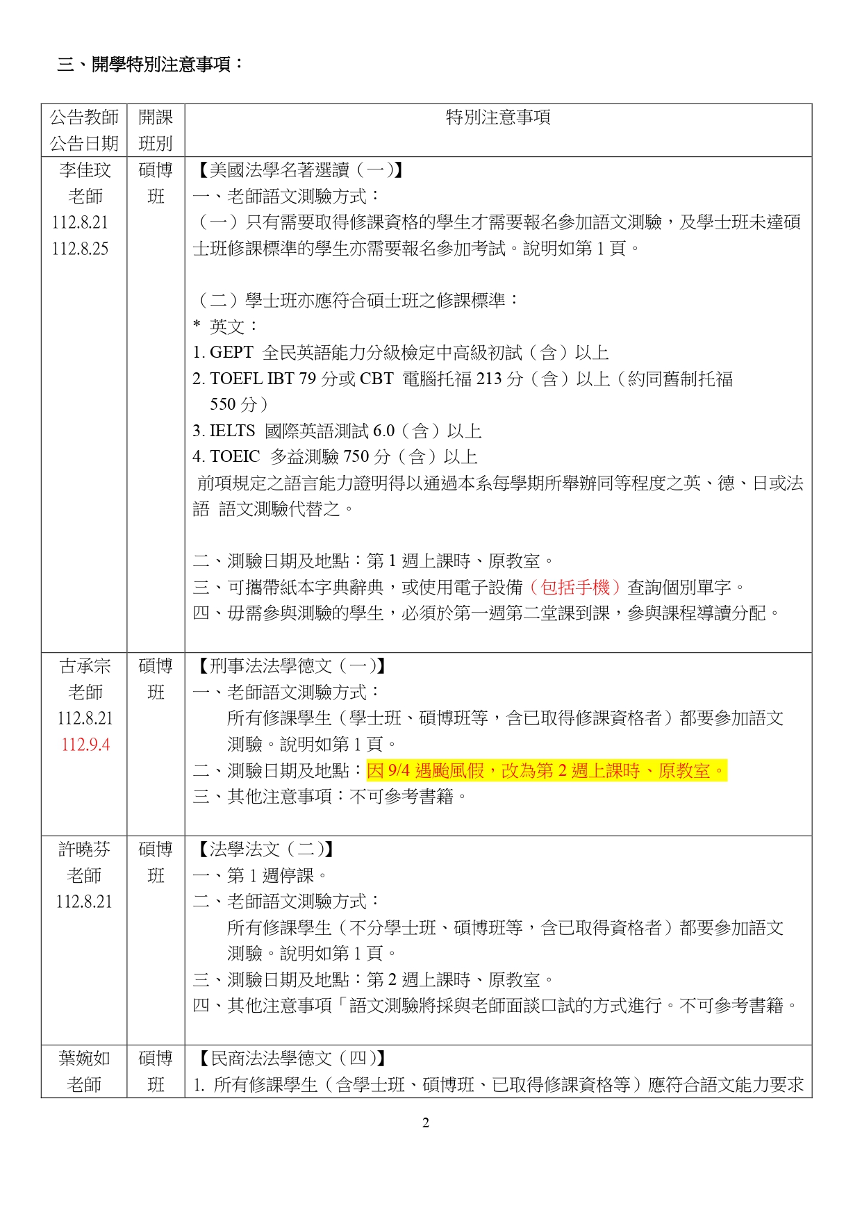 本學期開學公告(含考試或停課等訊息)112.09.05