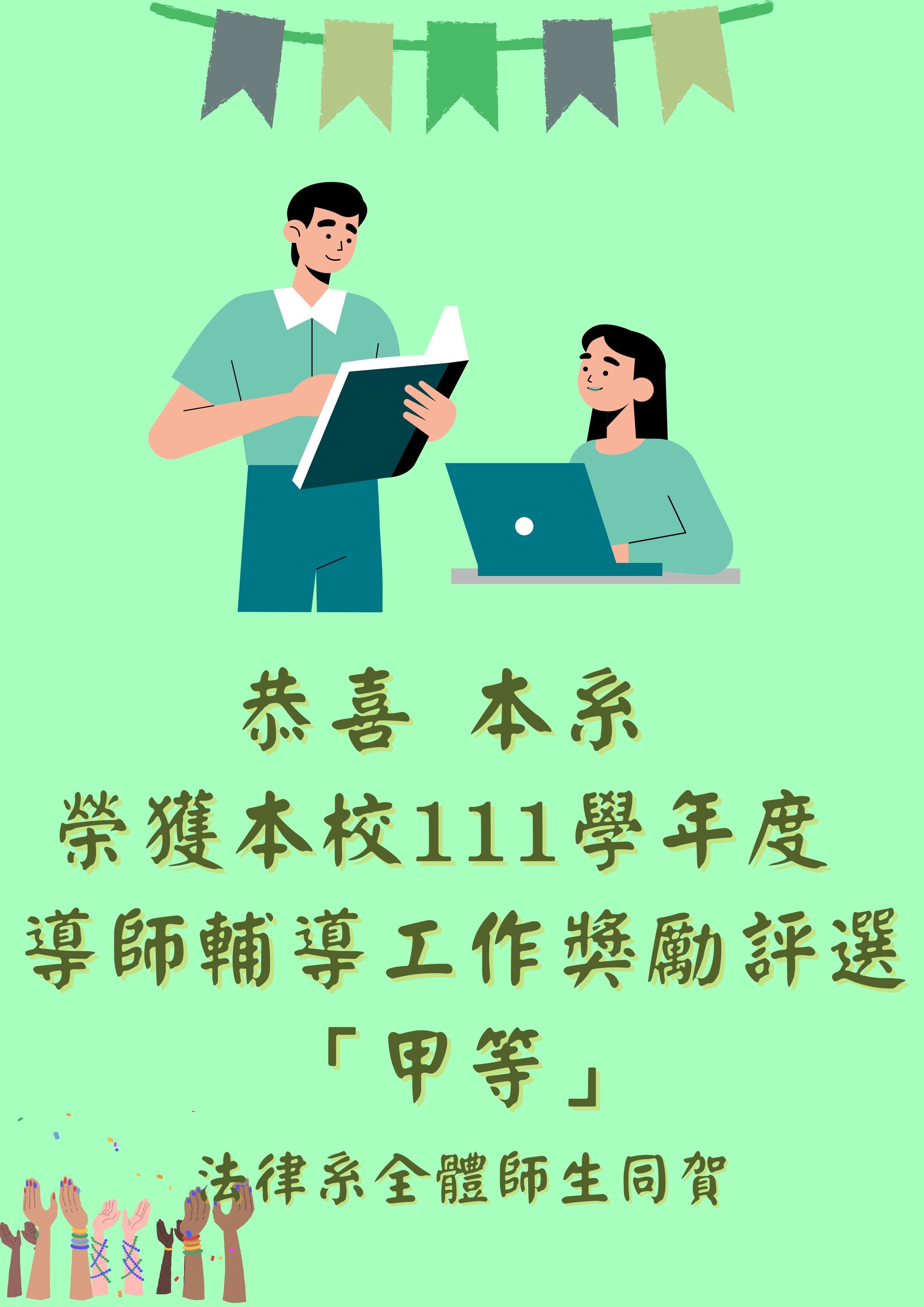 本系榮獲本校111學年度導師輔導工作獎勵評選「甲等」