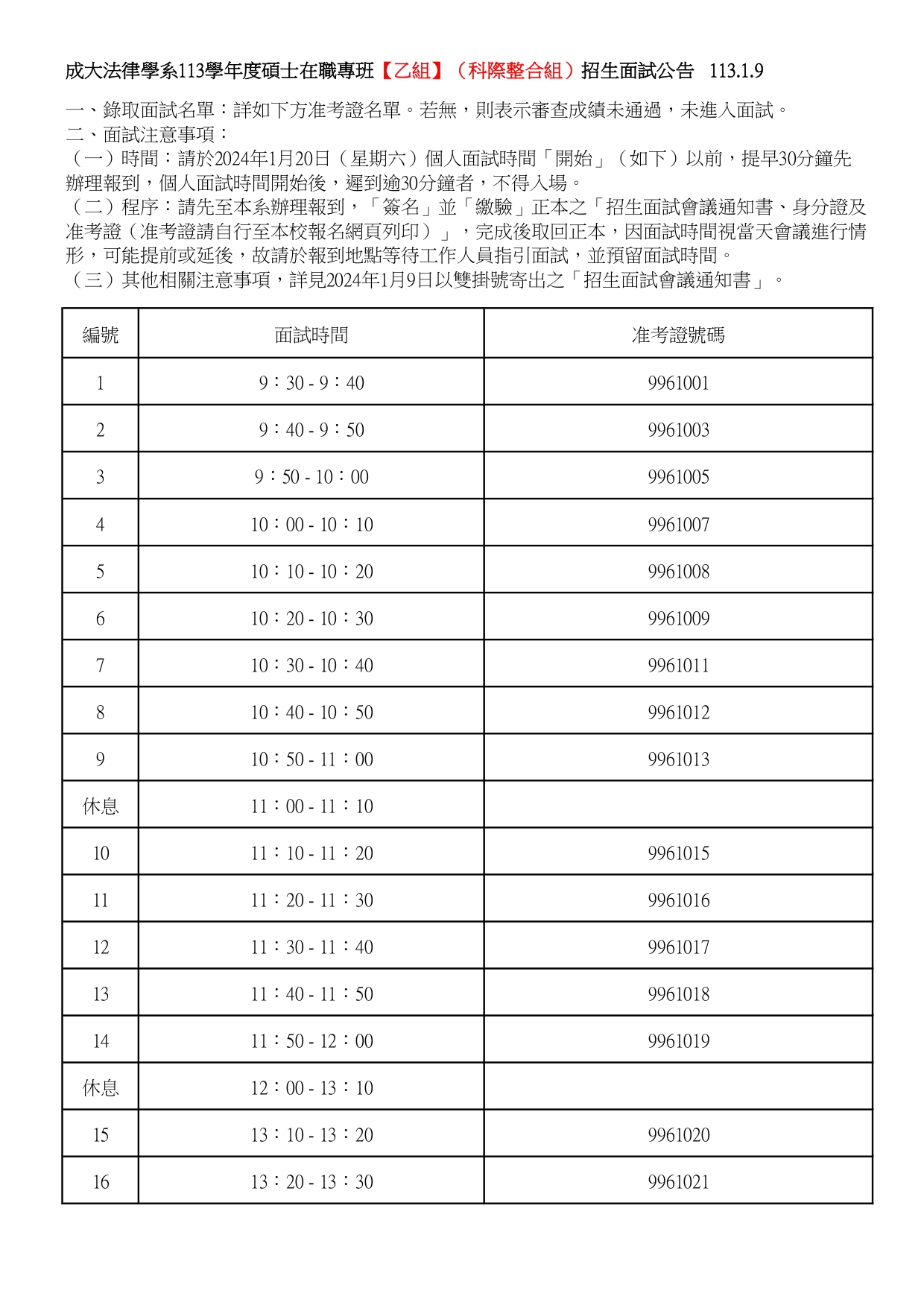 本系113學年度碩士在職專班【乙組】(科際整合組)招生面試公告