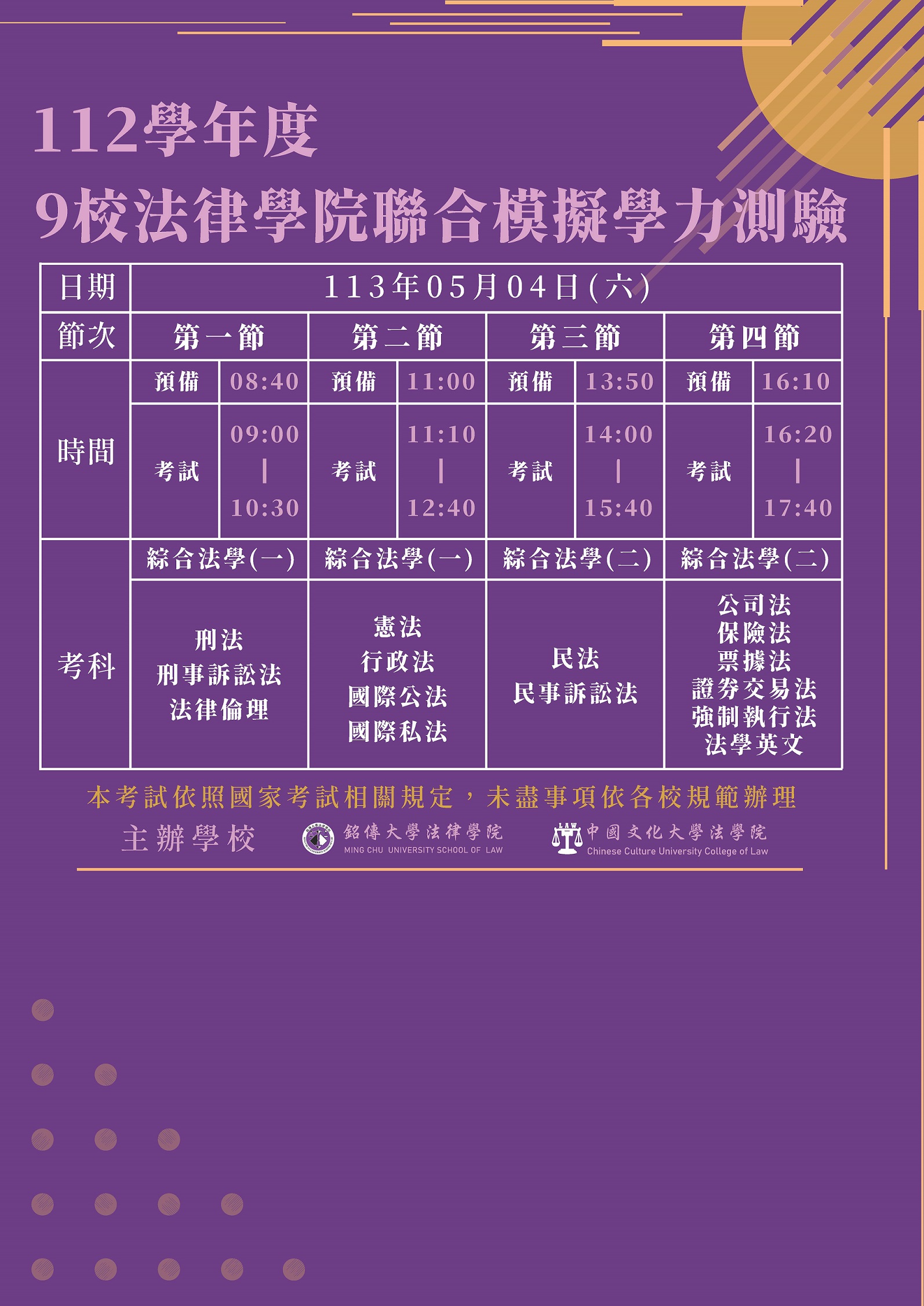 考試日期訂於2024年5月4日(星期六),餘詳見附件「考試日程表」。