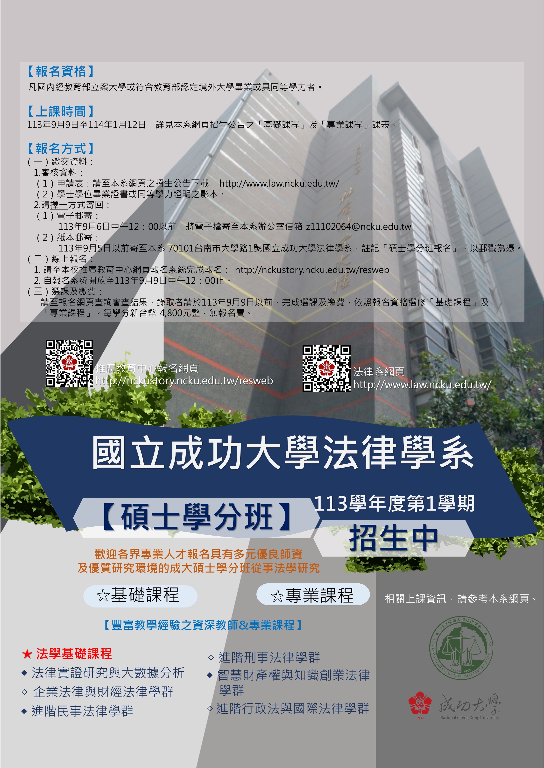 推廣教育中心報名網頁:http://nckustory.ncku.edu.tw/resweb