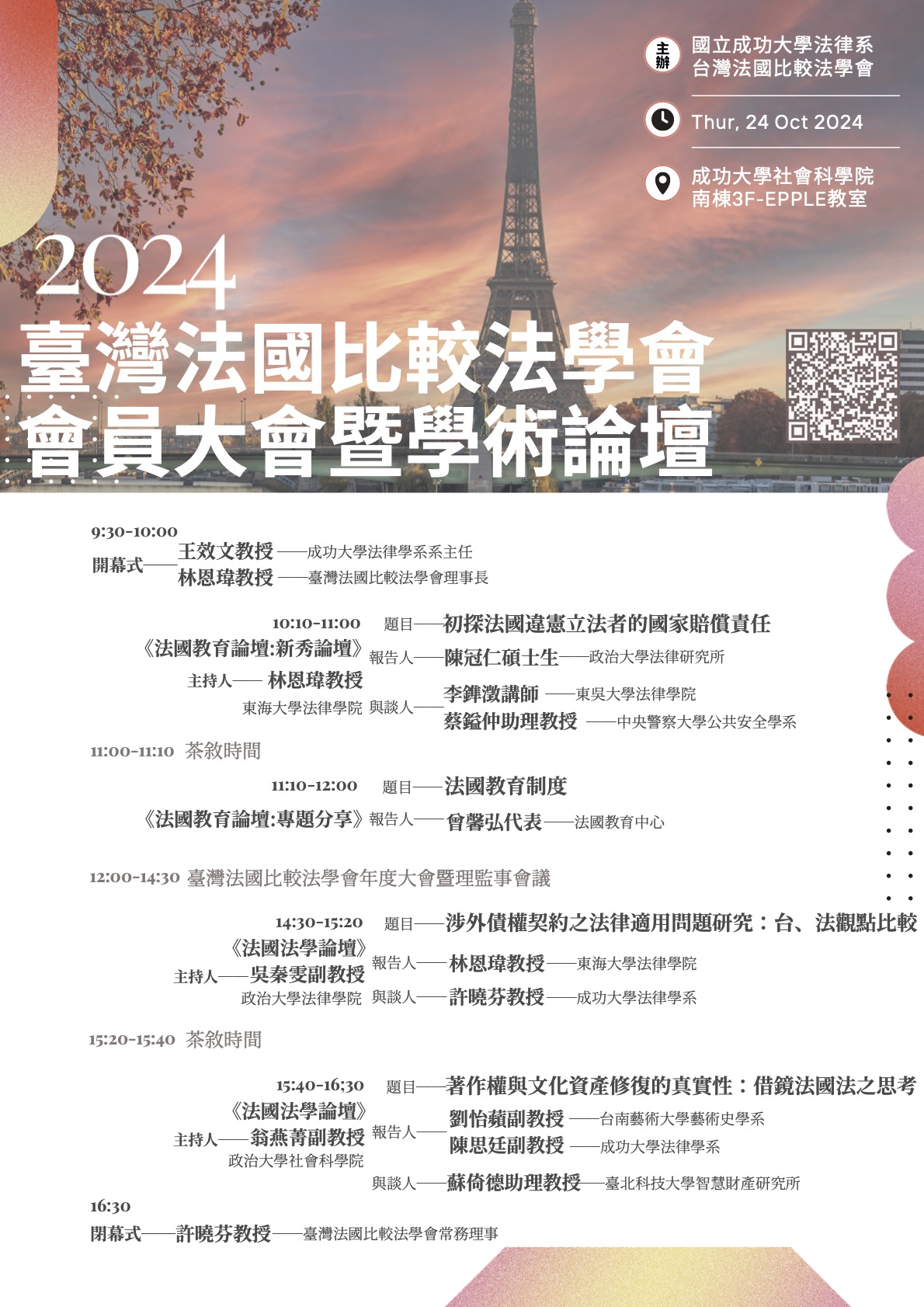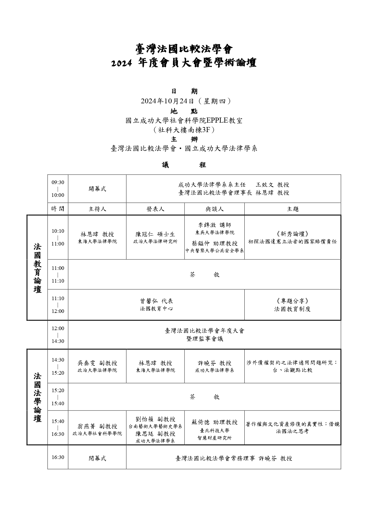 「臺灣法國比較法學會 2024 年度會員大會暨學術論壇」