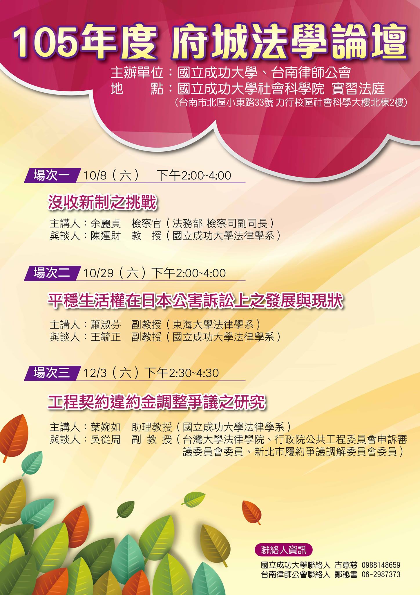 [105.11.27] 12月3日 府城法學論壇 第三場<平穩生活權在日本公害訴訟上之發展與現狀>