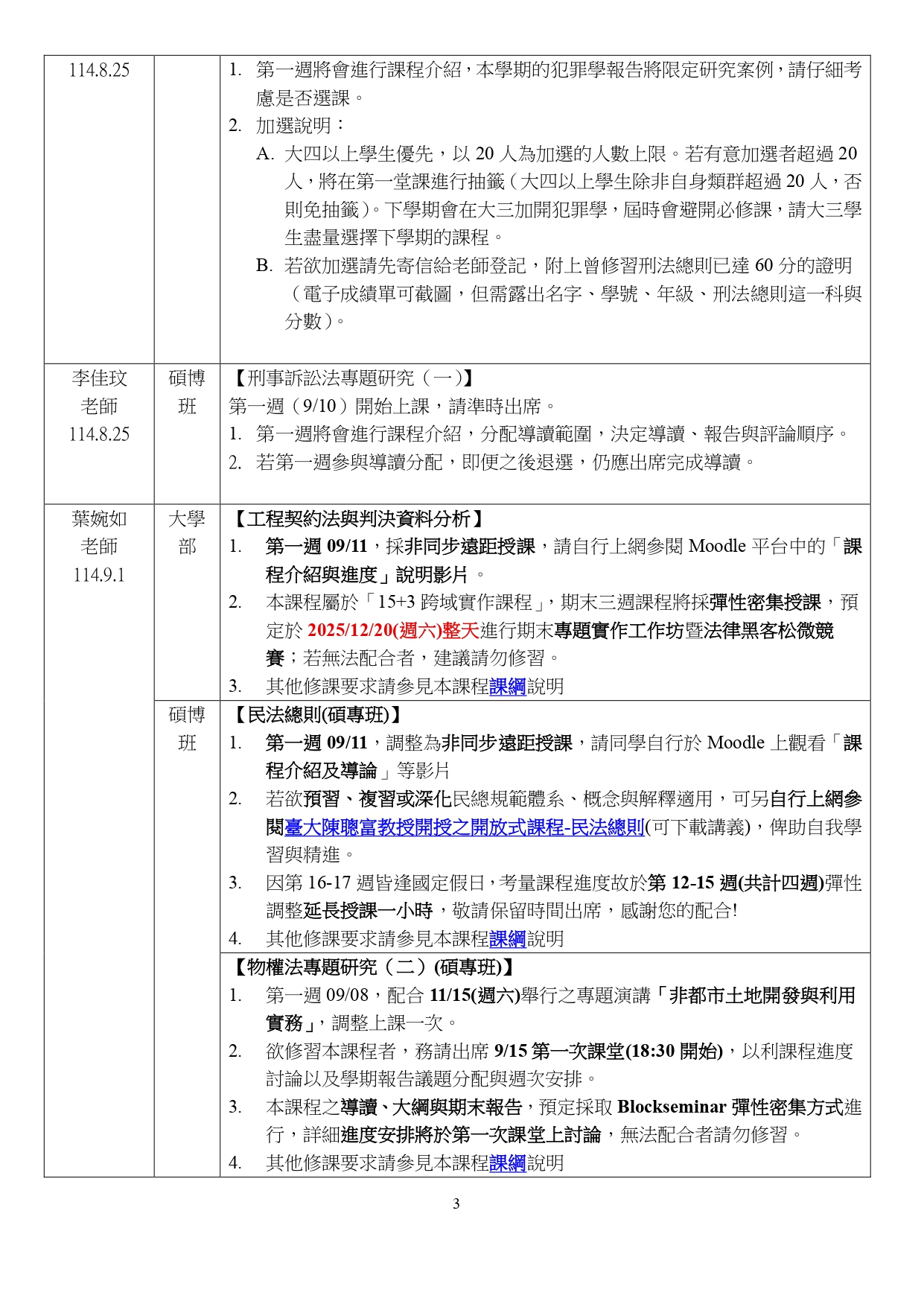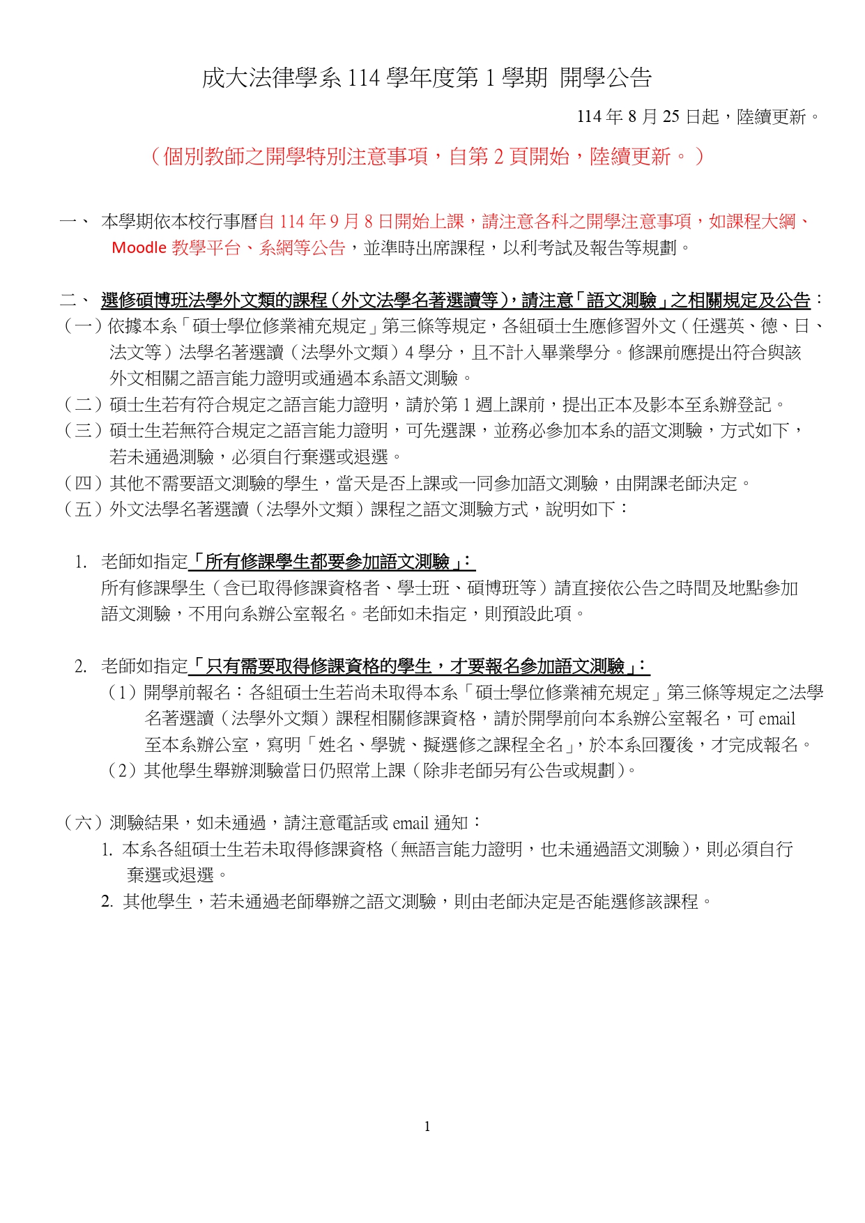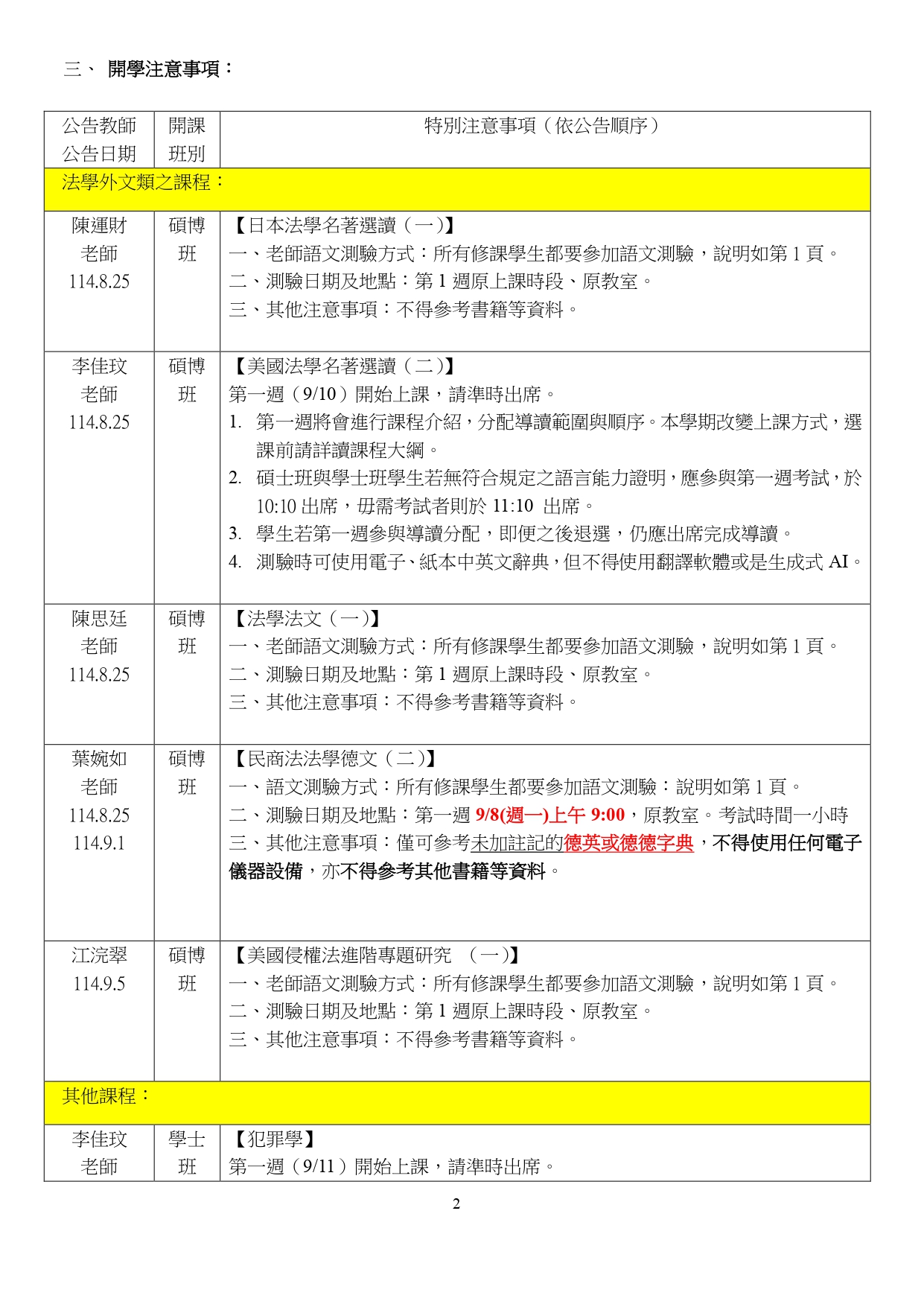 本系114學年度第1學期 開學公告(114.09.05更新版)