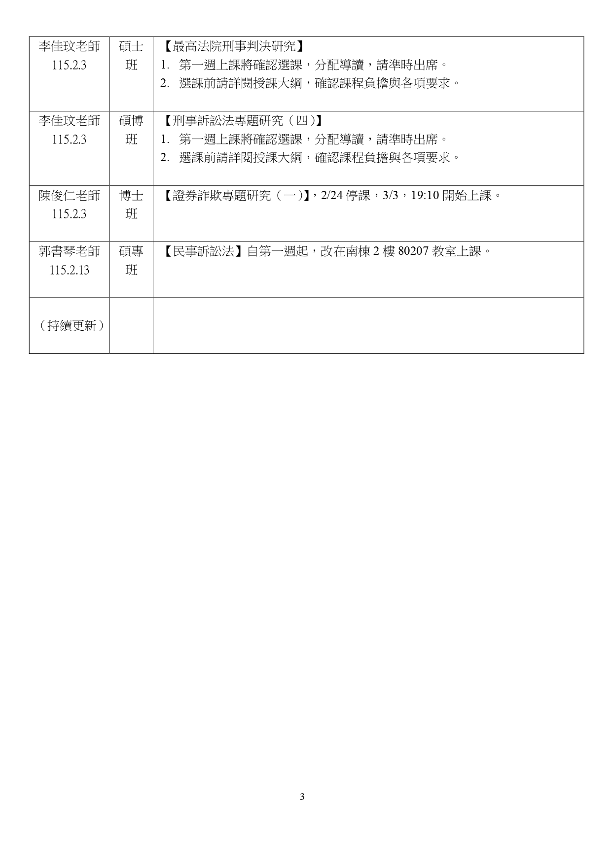 本學期「開學上課公告」(如測驗、停課、調課等,陸續更新)115.2.13