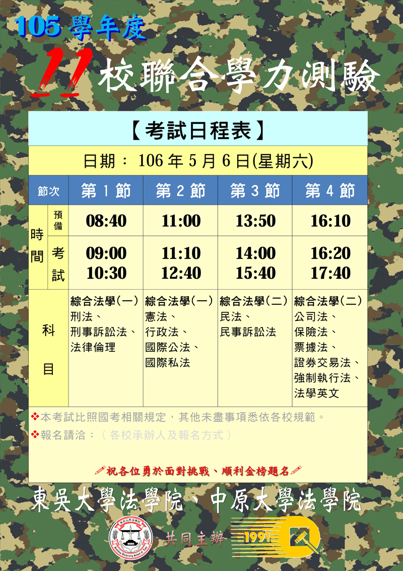 五、考試日期、科目等相關資訊:考試日期訂於106年5月6日(星期六),其他詳見附件「考試日程表」與本校考試規定。